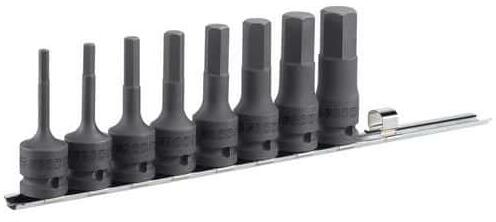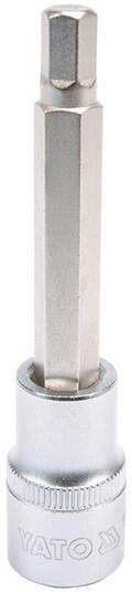 YATO YT-04394 Hosszú bit dugókulcs Imbusz Professzionális HEX imbuszkulcs, foglalat mérete 1/2" , szár mérete 8 mm . krómozott kupak CrV6150 acélból AISI S2 acélból készült és nikkelezett csap pótolhatatlan eszköz egy autóban vagy gépészeti műhelyben.