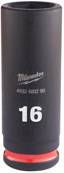 Fejméret: 16 mm Befogás: 3/8" négyszög Testátmérő: 23.8 mm Munkahossz: 9.6 mm Teljes hossz: 65 mm Tőcsavar mérete: M10 Anyaga: CrMo Színes tintával töltött jelölések és lézergravírozott cikkszámok a kopásállóság érdekében Kétlyukú kialakítás és horony a biztonsági tartozékok számára.