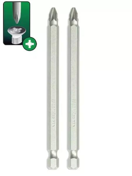 A képen látható méretek csak példák. A tényleges méretek a termékleírásban találhatók. PZ2 csavarhúzóhegyek. A bitek S2 acélból készülnek, amelyet nagy keménység és ütésállóság jellemez. Kémiai összetételüknek és hőkezelésüknek köszönhetően a bitek hoss zú ideig megőrzik nagy szilárdsági tulajdonságaikat. A bitek nagy keménységgel és ütésálósággal