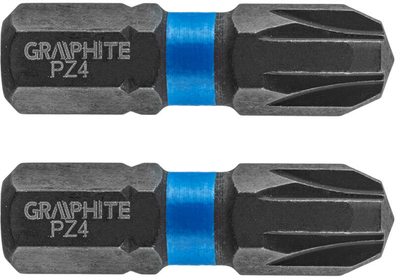 GRAPHITE bit ütvecsavarozáshoz. Nagy teljesítményű bitek, amelyeket nagy nyomatékú csavarbehajtóval vagy ütvecsavarozóval történő munkavégzéshez terveztek. Kiváló minőségű S2 acélból készülnek, amelyet fokozott rugalmasság és a mechanikai sérülésekkel szembeni ellenállás jellemez. A nagy nyomaték hatására a torziós zóna csökkenti az erőátadást, ami ellenáll
