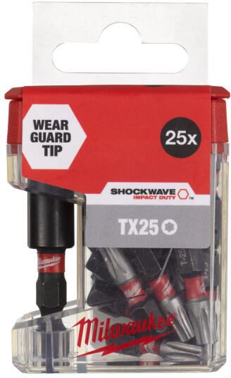 MILWAUKEE Bithegy T25 25 mm + 1/4" mágneses bithegy-tartó 60 mm hosszú (26 db/cs) MILWAUKEE Bithegy T25 25 mm + 1/4" mágneses bithegy-tartó 60 mm hosszú (26 db)