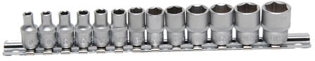 BGS Technic - Germany 13 részes készlet, dugókulcstartó sínen Csatlakozás:1/4" Méretek: 4 - 4,5 - 5 - 5,5 - 6 - 7 - 8 - 9 - 10 - 11 - 12 - 13 - 14 mm