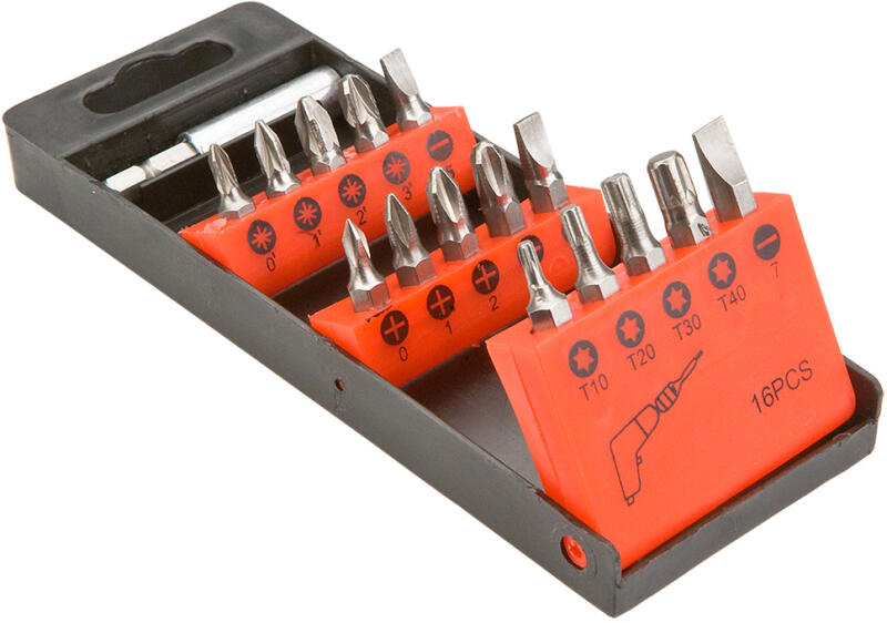 Csavarhúzó bitek befogószárral, 16 db‑os klt.
