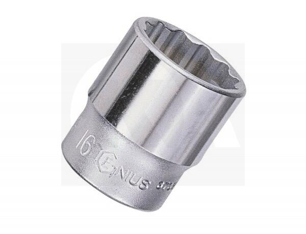12 szögű kivitel, amely nagyobb nyomatékot eredményez. Krómozott, polírozott, króm-vanádium acél. Belül letört élekkel a csavarfejekre való gyors ráfogás érdekében. Belső négyszög minden oldala horonnyal. Méret: 17 mm Teljes hossz: 30 mm Súly: 60 g