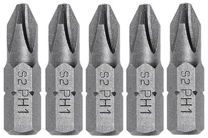 HÖGERT Csavarhúzó BIT, PH1, 25 mm. 5 db / blister (HT1S301) Termék információ: Anyaga : S2 acél Méret: PH1 25 mm Phillips PH kereszthornyos csavarozó bit vezetékes és akkumulátoros fúró- csavarozókhoz Formatartó Süllyesztékben kovácsolt 58- 60 HRC keménységű Magas frekvenciájú munkálatokhoz és nagy terhelésekhez ajánlott DIN 3126 szabvány szerint gyártott 1/4" hatszö