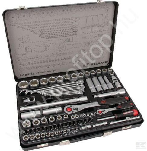 Professzionális 82 darabos kombinált dugókulcskészlet, 1/4" és 1/2"-es hajtással, finoman fogazott irányváltó racsnival és különféle króm-vanádium acélból készült dugókulcsokkal. Jól rendszerezett, erős, strapabíró fémtokban. Strapabíró fémtok, amely tökéletesen megvédi a szerszámokat. Erős dugókulcsok króm-vanádium acélból-Tartalom-áttekintő az egyszerű az