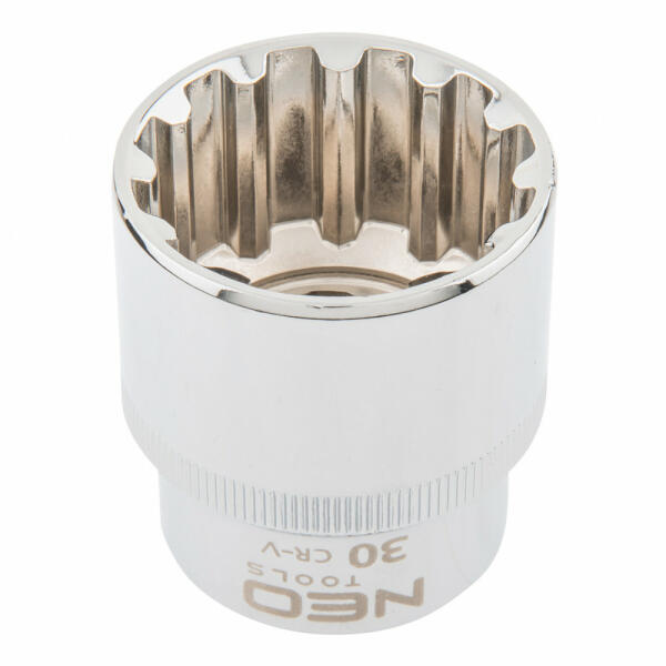 A Neo ½"-os Spline dugókulcs króm-vanádium acélból készül, a DIN 3124 szabványnak megfelelően. A dugókulcs szferikus kialakítása igen széles alkalmazási lehetőségeket biztosít, lehetővé téve a Torx, a Spline, a 12-lapú, a metrikus, a colos és a négylapú csavarok kicsavarását is. A szerszám minőségét bizonyítja a TÜV tanúsítvány és a gyártó által nyújtott 25