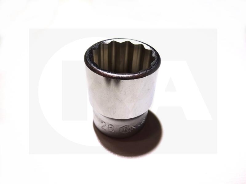 Anyag: Chrome Vanadium acél Felület: krómozott Csatlakozás: 1/2" A: 20 mm D1: 28 mm D2: 26 mm Hossz: 78 mm Súly: 190 g