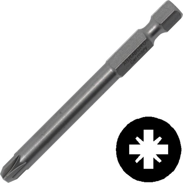 Jellemzők Csava rbehajtó hegy (röviden: bit) hosszú (70 mm), ¼ E 6,3 befogással DIN 3126 szerint gépi csavarozókhoz és kézi működtetésű szerszámokhoz. Professzionális minőségű extra kemény csavarbehajtó hegy torziós zónával. A torziós zóna csökkenti az erőcsúcsokat mind lágy, mind pedig kemény csavarozás esetén, ezáltal jelentősen nő a szerszám élettartama. A