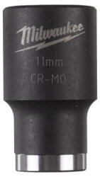 MILWAUKEE Gépi dugókulcs 3/8" 11 mm CrMo A SHOCKWAVE IMPACT DUTY acél (króm-molibdén) egy kiváló minőségű ötvözött acél, amely egyedülálló szilárdságot és tartósságot biztosít. A 6 pontos felfogásnak köszönhetően kiválóan illeszkedik. A bemélyített sarkok lehetővé teszik, hogy a csavarozó erőátvitel a lapos részeken történjen a sarkok helyett. A vékony fal k