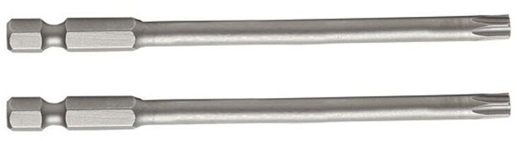 A képen látható méretek példaként szolgálnak. A tényleges méreteket lásd a termékleírásban. Ütvecsavaros csavarhegyekTORX. A bitek S2 acélból készülnek, amely nagy keménységgel és ütésállósággal rendelkezik. A speciális kémiai összetételnek és hőkezelésnek, valamint a speciális ütéselnyelő zónának köszönhetően a bitek hosszú távon megőrzik nagy szilárd