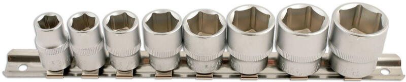Colos méretezésű kézi dugókulcs készlet dugókulcs tartó sínnel. Meghajtás: 3/8" Profil: 6-lapú Hosszúság: 27 mm Anyag: Chrome-Vanádium acél Méretek: 3/8", 7/16", 1/2", 9/16", 5/8", 11/16", 3/4", 13/16"