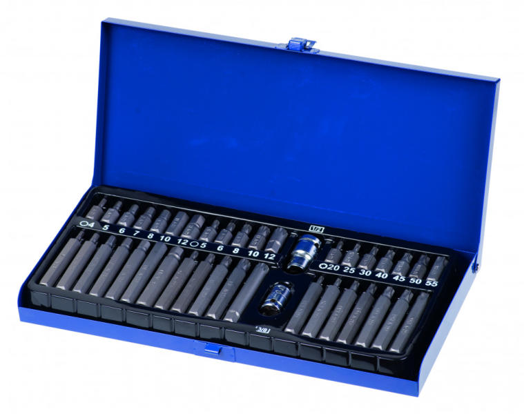 LEÍRÁS 10mm-es bitek Bit befogó adapterek: 3/8″, 1/2″ Torx 75 mm: T20, T25, T30, T40, T45, T50, T55 Torx 30 mm: T20, T25, T30, T40, T45, T50, T55 XZN (spline) 75 mm: M5, M6, M8, M10, M12 XZN (spline)30 mm: M5, M6, M8, M10, M12 Imbusz 75 mm: H4, H5, H6, H7, H8, H10, H12 Imbusz 30 mm: H4, H5, H6, H7, H8, H10, H12