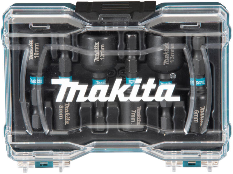 Az Impact BLACK dugókulcs készlet a Makita termékválasztékában található. A készlet hat darab dugókulcsot tartalmaz, amelyek méretei 6, 7, 8, 10, 12 és 13 mm. A kulcsok anyaga króm-vanádium acélból készült, és a fekete szénfestékkel ellátott felületük ellenállóbbá teszi őket a karcolásokkal és a rozsdával szemben. A kulcsok jellemzői közé tartozik az is, hogy mág