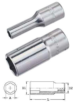 Anyag: Chrome Vanadium acél Csatlakozás: 3/8" A: 14 mm D1: 19 mm D2: 20 mm Hossz: 63 mm Súly: 120 g