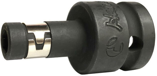 Golyós bit befogatási megoldás, külső rugós gyűrűvel 1/2" > SW 1/4" Maximális forgatónyomaték: 120Nm Anyagösszetétel Chrome-Molibden