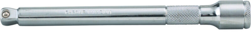 Kiváló minőségű, polírozott, króm-vanádium acél. Recézett, hogy kézzel is hajtható legyen. Olyan helyekre, ahol a hosszabbítót nem lehet merőlegesen a meghajtó négyszögbe helyezni. 15°-ig dönthető. Teljes hossz: 250 mm Súly: 260 g