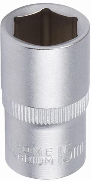 Kiváló minőségű, polírozott, króm-vanádium acél. Recézett, hogy kézzel is hajtható legyen. Olyan helyekre, ahol a hosszabbítót nem lehet merőlegesen a meghajtó négyszögbe helyezni. 15°-ig dönthető. Teljes hossz: 75 mm Súly: 65 g