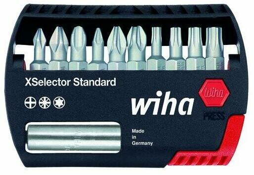 Nyitás a Wiha logó megnyomásával Erős, magas minőségű műanyag ház Könnyedén elérhető bitek Kompakt kialakításnak köszönhetően kényelmesen hordozható Bliszteres csomagolásban