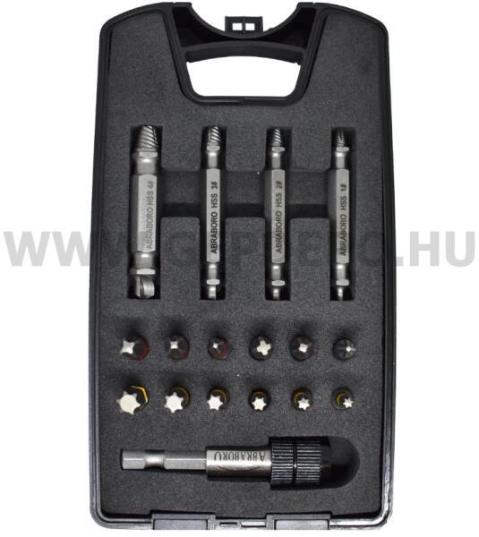 Abraboro bit- és tört csavar kiszedő készlet - 17 részes 1 db PH 1PH 2PH 31 db PZ 1PZ 2PZ 31 db Torx 10Torx 15Torx 20Torx 25Torx 30Torx 401 db mágneses bitszár 1/4 x 60 mm1 db csavarkiszedő No. 1234 Az ABRABORO immár 28 éve forgalmaz professzionális kézi- és elektromos szerszám tartozékokat. Számos, nagyrészt európai gyártó kizárólagos hazai importőre.