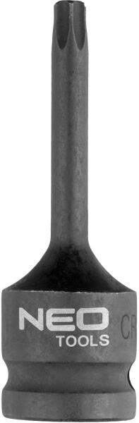 NEO torx bit 1/2", ütvecsavarozókhoz. Króm-molibdén acélból készült - ellenáll a korróziónak, a dinamikus ütésterhelésnek és a magas hőmérsékletnek. A golyós biztosító védelmet nyújt a kulcs kicsúszása ellen. A NEO márka megfelel a szakemberek igényeinek.
