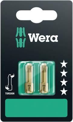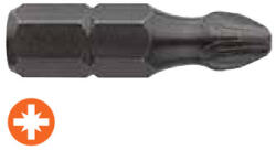 PZ 2 kereszthornyú bit, Pozidriv, hossz:25 mm, Wera 855/2 TH 05073371001 PZ 2 kereszthornyú bit, Pozidriv, hossz:25 mm, Wera 855/2 TH 05073371001 Kemény bitek torziós zónával, különösen alkalmasak puha anyagba történő csavarozáshoz, mint pl. fába. A kemény tulajdonság megakadályozza a meghajtott hegy idő előtti törését. A torziós zóna elnyeli a felesleges forgatónyomatéko