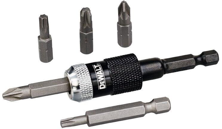 A DEWALT DT71514 6 részes bit- és gyorskioldó bitkészlet a következőket tartalmazza: 25 mm-es bitek: Pz2, Pz3, T25 50 mm-es bitek: Pz2, T20 Gyorskioldó rögzítés