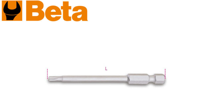 Beta - Italy Bit Torx 100 mm hosszúsággal T20-as fej kialakítással Tulajdonság: - Méret: T20 - Hosszúság: 100 mm - Anyaga: Edzett acél - Szabvány: ISO 1173 E 6,3 Súly: 24 g