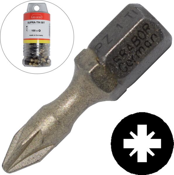 Jellemzők Csava rbehajtó hegy (röviden: bit) rövid (25 mm), ¼ C 6,3 befogással DIN 3126 szerint gépi csavarozókhoz és kézi működtetésű szerszámokhoz. A gyártó által újonnan kifejlesztett felületmegmunkálási eljárás (TiNZrn) során a bit dupla bevontatot kap; a 900°Con végzett titánkezelést egy újabb réteg, mikroérdességű cirkonbevonat követi, melynek köszönhető