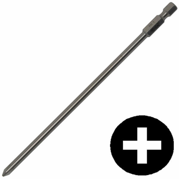 Csavarbehajtó hegy (bit) rövid (25 mm), 1/4 C 6,3 befogással, illetve hosszú méretben (50 mm-150 mm) 1/4 E 6,3 befogással DIN 3126 szerint gépi csarozókhoz és kézi működtetésű szerszámokhoz