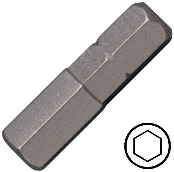 Csavarozó bit Extra Hart, HEX 2.5, 25 mm Bitek és pengék belsőkulcsnyílású csavarokhoz axiális nyomás nélküli nyomaték átvitelhez. Extra Hart típus, nagy mérettartóságú bevált minőség. Speciális edzési eljárással gyártva. Jellemző felhasználási területe metrikus menetű belsőkulcsnyílású csavarok fémbe becsavarása. Meghajtás ISO 1173 C6.3, 1/4" külső hatlapú