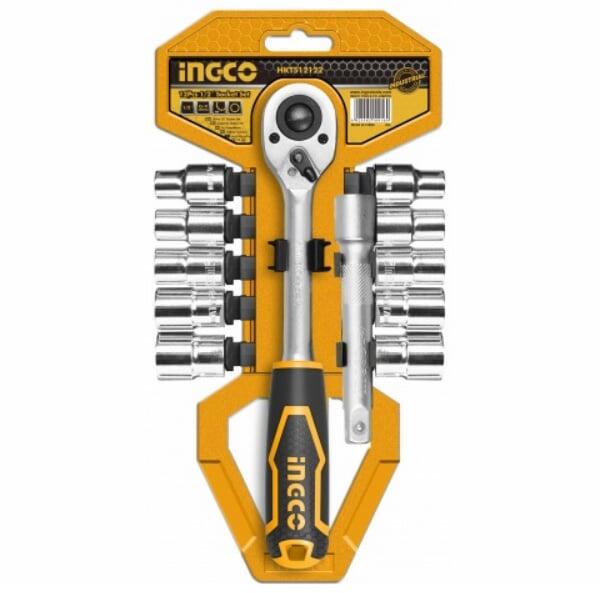 Méretek: 10, 11, 12, 13, 14, 15, 17, 19, 21, 24 mmAnyaga: 50BV30 magas minőségű CrV acélRacsnis hajtószár 72T (3 színű puha markolat)Toldószár: 125 mmHőkezeltKrómozott Szállítási terjedelem: 10 db 1/2 dugókulcs, 1 db 1/2" racsnis hajtószár, 1 db 1/2" toldószár, Műanyag akasztó