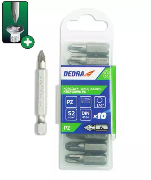 A képen látható méretek példaként szolgálnak. A tényleges méreteket lásd a termékleírásban. PZ2 csavarhúzóhegyek. A csavarhúzóhegyek S2 acélból készülnek, amelyet nagy keménység és ütésállóság jellemez. A kémiai összetételnek és a hőkezelésnek köszönhetően a bitek hosszú ideig megőrzik nagy szilárdsági tulajdonságaikat. A bitek nagy keménységgel és üt