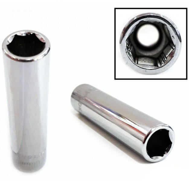 Lok-Typ dugókulcs fej, 1/4"-os, 6 lap fejű kiszerelésben, erős Chrome-Vanádium acélból készült, skót ipari minőségű. Lok-Typ típus, a legfeljebb 85%-ban elhasználódott "elnyalt" csavarok eltávolíthatók ezzel a rendszerrel. Előnye, hogy a szabványos hatlapú csavaroknál is használhatjuk, de kialakításuknak köszönhetően (3 lapján 2 - 2 bevágás található) az elhaszná