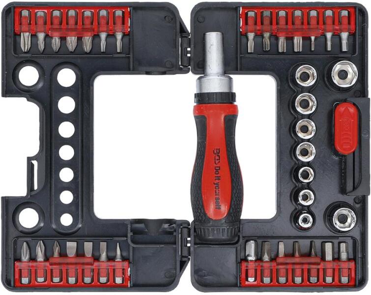 Behajtás: 1/4 " Kétkomponensű, ergonomikus markolat Praktikus, műanyag tartóban Bruttó súly: 480 g Készlet tartalma 4 bit, külső hatszögletű kulcsnyílású hajtás 6,3 mm (1/4"), Csillag PH: PH0 - PH1 - PH2 - PH3 4 bit, külső hatszögletű kulcsnyílású hajtás 6,3 mm (1/4"), Csillag PZ: PZ0 - PZ1 - PZ2 - PZ3 4 bit, külső hatszögletű kulcsnyílású hajtás 6,3 mm (1/4"), lapo