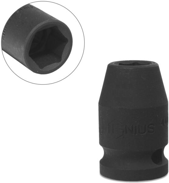 GENIUS Tools - Canada Külső átmérő: 25 mm, belső átmérő: 16 mm Teljes hossz: 38 mm Súly: 90 g Falvastagság: 4,5 mm 6 lapú normál (rövid) kialakítás Anyaga: Chrome Molybdenum acél 1/2"-os