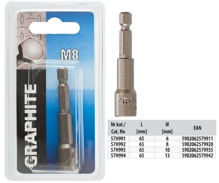 A nagy szilárdságú S2 acélból készült GRAPHITE mágneses feltét önfúró csavarok becsavarására szolgál. Az erős, bronzhüvelyben elhelyezkedő mágnes megakadályozza a csavar kiesését a becsavarás kezdetekor. Mágneses feltét, a mágnes bronzperselyben fészkel, ¼" szár, S2 acél