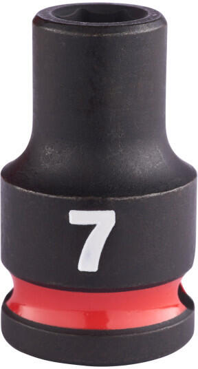 MILWAUKEE Gépi dugókulcs 3/8" 7 mm CrMo Jellemzők SHOCKWAVE IMPACT DUTY króm-molibdén magas ötvözésű acél a kiváló szilárdságért és tartósságért A 6 pontos felfogásnak köszönhetően kiválóan illeszkedik. Csúszásmentes hatszögletű geometria a foglalat és a rögzítőelem lekerekítésének megakadályozása érdekében. Extra mély kialakítás lehetővé teszi a szabad