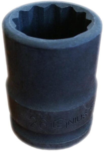 Genius Tools - Canada Erős Chrome-molibdén acélból készített 12 szögű 3/4"-os légkulcs fej. Keskenyített falú (D1 méret: fej külsőO) légkulcsfej a szűkebb helyekhez való könnyebb hozzáférésért. Tulajdonságok: Meghajtás: 3/4" Fejlap: 26 mm Lap kiosztás: 12 lapú Anyaga: Chrome-Molibdén acél Súly: 320 g