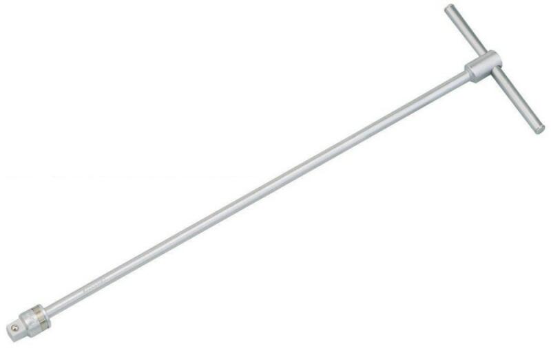 T-alakú crowa hajtókar, hosszú csúsztatható szárral, gömb-csukló fejjel, amely kb. 30°-os döntést tesz lehetővé. Fej: 3/8"Hossz: 350mm