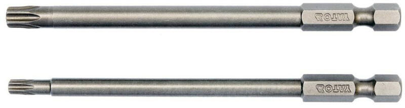Gyártó : Yato Termék típusa : Torx biztonsági csavarhúzó bit készlet Darabszám a készletben : 2 db Anyag : S2 acél Bit típus : Torx biztonsági Bit méretek : T20 x 100 mm T30 x 100 mm Bit foglalat mérete : 1/4" (6.3 mm) Felületkezelés : homokfúvott Jellemzők : Kiváló minőségű S2 acél anyag, amely hosszú élettartamot biztosít. Kiválóan alkalmas speciális, biztonsági c