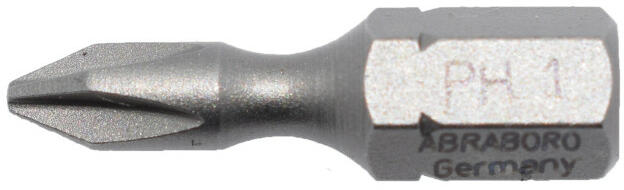 Csavarbehajtó hegy (bit) rövid (25 mm), 1/4 C 6,3 befogással, illetve hosszú méretben (50 mm-150 mm) 1/4 E 6,3 befogással DIN 3126 szerint gépi csarozókhoz és kézi működtetésű szerszámokhoz
