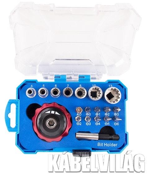 Tulajdonságok: 1 db aluminium hajtószár 1 db rozsdamentes acél bit-tartó 1 db AD (Anyaga: CRV6150) Dugók: 4/5/6/7/8/10/13 mm PHILLIPS: #0, #1, #2, #3 Bitek: 2.0/3.0/4.0/5.0/6.0 mm ... Tulajdonságok: 1 db aluminium hajtószár 1 db rozsdamentes acél bit-tartó 1 db AD (Anyaga: CRV6150) Dugók: 4/5/6/7/8/10/13 mm PHILLIPS: #0, #1, #2, #3 Bitek: 2.0/3.0/4.0/5.0/6.0 mm