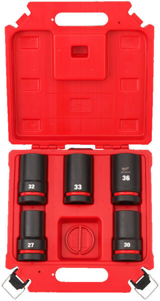 MILWAUKEE® 1" dugókulcskészlet kamion és busz szereléséhez! A készlet tartalma: 27 mm, 30 mm, 32 mm, 33 mm, 36 mm + biztonsági rögzítőgyűrű