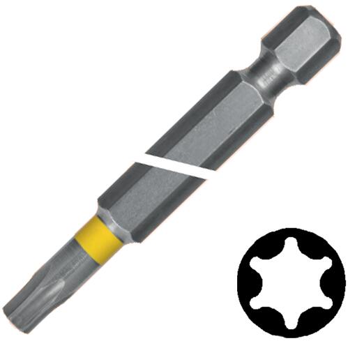 A képen látható méretek példaként szolgálnak. A tényleges méreteket lásd a termékleírásban. T40-es csavarhúzóhegyek. A bitek S2 acélból készülnek, amelyet nagy keménység és ütésállóság jellemez. A kémiai összetételnek és a hőkezelésnek köszönhetően a bitek hosszú ideig megőrzik nagy szilárdsági tulajdonságaikat. A bitek nagy keménységgel és ütésállós