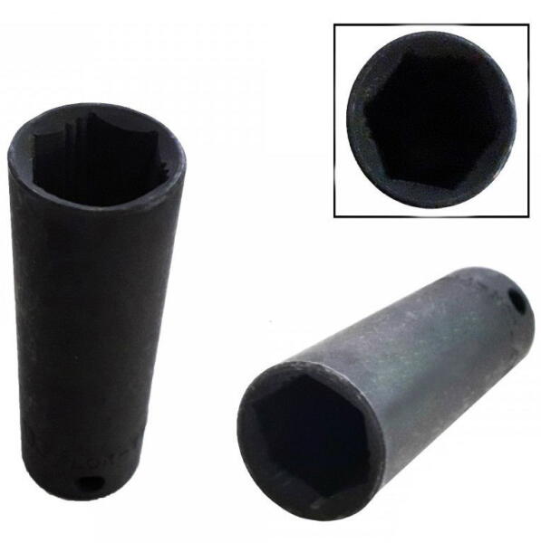 Lok-Typ légkulcsfej, 1/2"-os, 6 lap fejű kiszerelésben, erős Chrome Molybdenum acélból készült. Lok-Typ típus, a legfeljebb 85%-ban elhasználódott "elnyalt" csavarok eltávolíthatók ezzel a rendszerrel. Előnye, hogy a szabványos hatlapú csavaroknál is használhatjuk, de kialakításuknak köszönhetően (3 lapján 2 - 2 bevágás található) az elhasználódott csavaroknál is ha