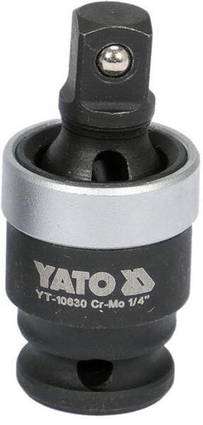 YATO Univerzális csuklós csatlakozó. Ideális csatlakozásokhoz szűk helyeken. Tökéletes nagy nyomatékú feladatokhoz autóipari és ipari környezetben. Méret: 1/4" Anyag: CrMo
