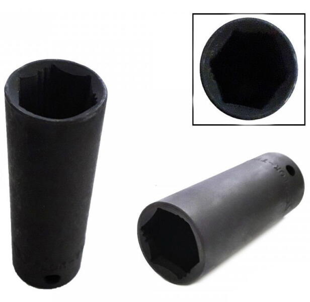 Lok-Typ légkulcsfej, 1/2"-os, 6 lap fejű kiszerelésben, erős Chrome Molybdenum acélból készült. Lok-Typ típus, a legfeljebb 85%-ban elhasználódott "elnyalt" csavarok eltávolíthatók ezzel a rendszerrel. Előnye, hogy a szabványos hatlapú csavaroknál is használhatjuk, de kialakításuknak köszönhetően (3 lapján 2 - 2 bevágás található) az elhasználódott csavaroknál is ha