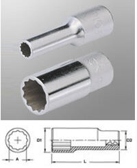 Anyag: Chrome Vanadium acél Felület: krómozott Csatlakozás: 1/2" A: 12 mm D1: 18 mm D2: 24 mm Hossz: 78 mm Súly: 120 g