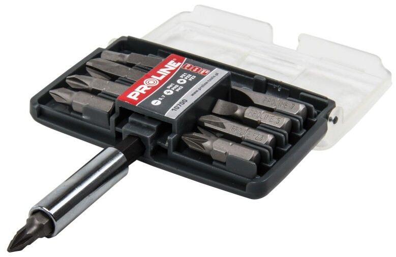 A készlet tartalma: 10699: - PH1 - 1 db. , PH2 - 3 db. - PZ1 - 1 db. , PZ2 - 3 db. - HEX bitfej: H6 mm - 1 db. - 1/4 " - es mágneses bittartó 10700: - PH1, PH2, PH3 - PZ1, PZ2, PZ3 - lapos(egyenes) bitfejek: 5, 6 mm - HEX bitfej: H4 mm - 1/4 " - es mágneses bittartó